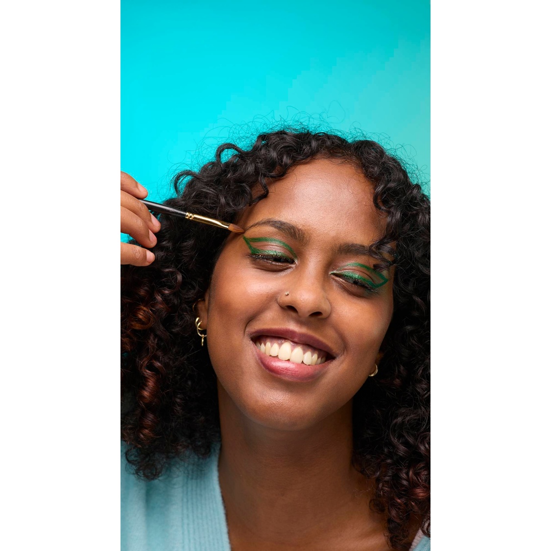 Here’s a little courage… if you need some! Wear this striking, defining shade of emerald green eyeliner to knock ’em of their feet! Whether you’re into bold, green, winged eyeliner, or prefer to add a little subtle definition, this emerald green liquid liner can do both! Just be sure to apply with our handmade Wing It and Get In There brushes, making application easy! Looking to level up your eye look? All of our shades can also be used alongside our Hey Big Blender brush for a statement wash of colour all over the lid.