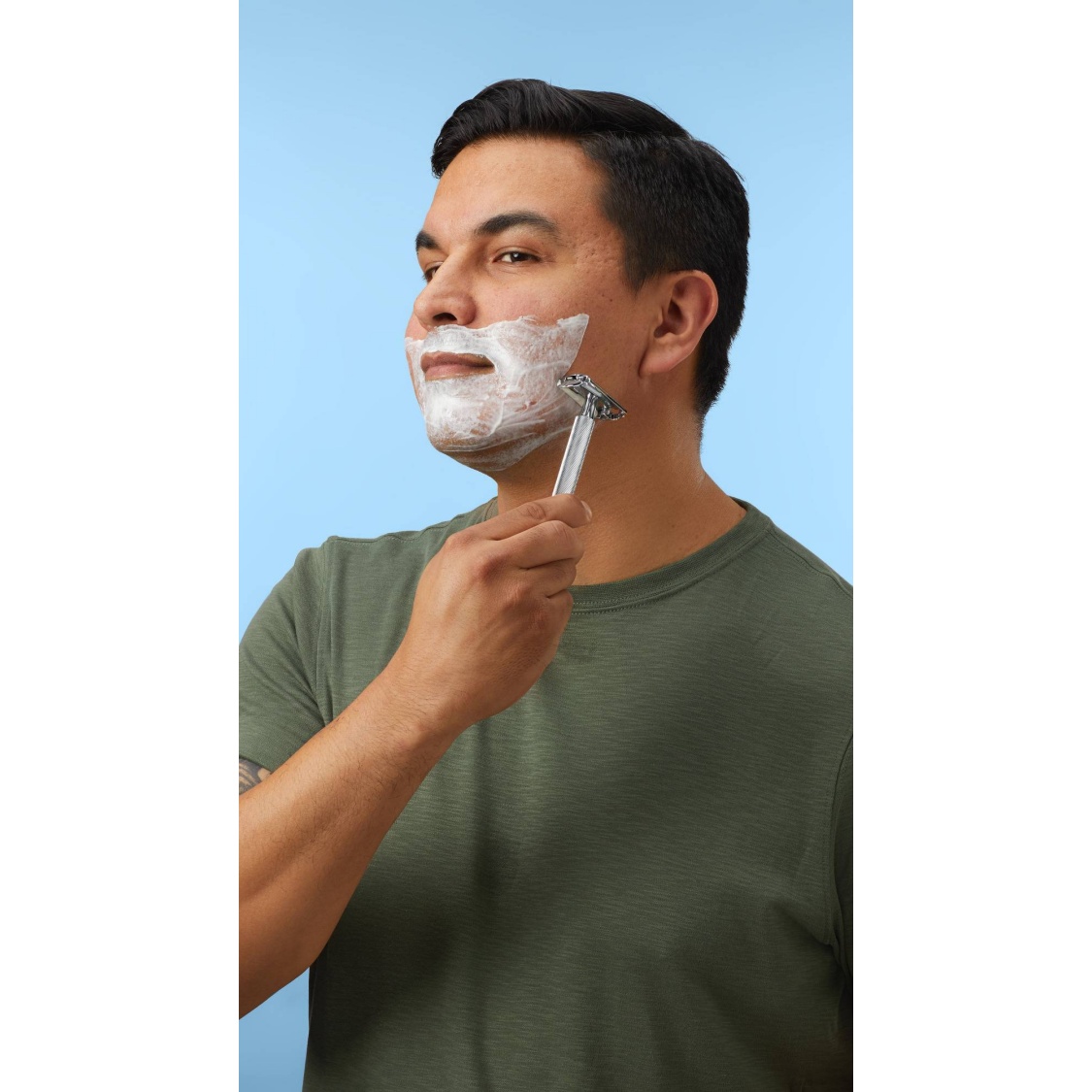 Whip that shadow into shape with lashings of shea butter and oat milk for irresistibly smooth skin. Sweep a generous layer over wet skin or beards and shave as desired, remembering to rinse the blade frequently under warm water.