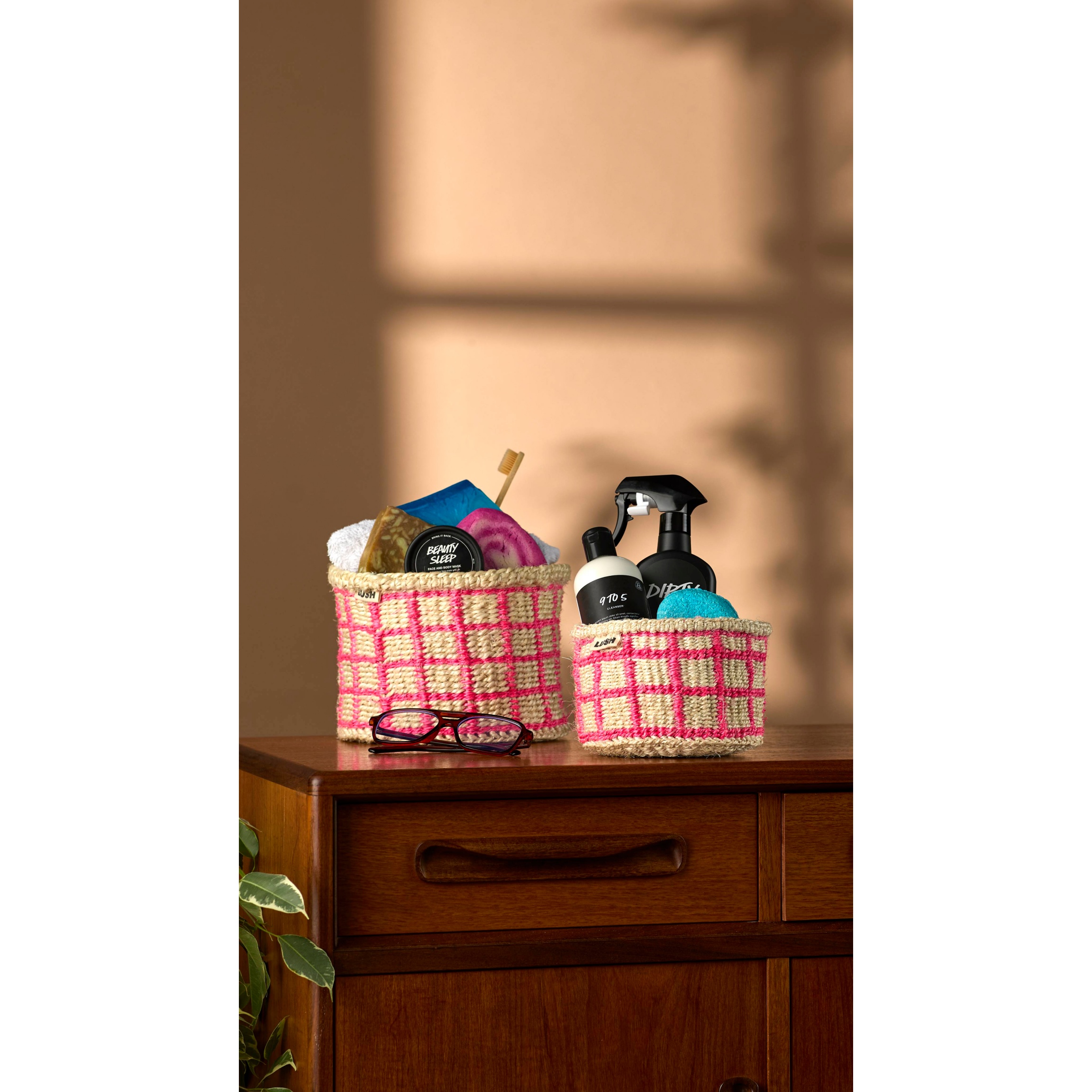 This colourful and characterful handwoven basket combines natural sisal and light pink to deliver the perfect pop of colour.
