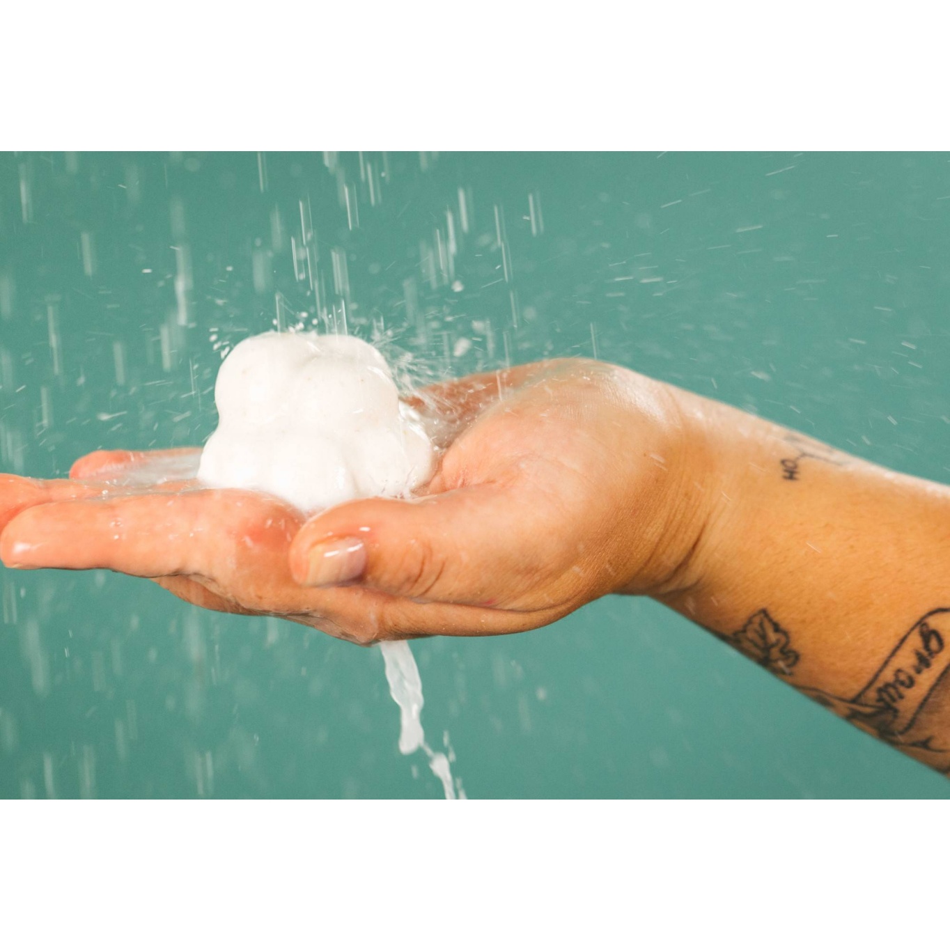 Gently hold under the running shower and allow to foam up. Take a deep breath of the essential oils to wind you down and rub the foam all over. Perfect for a single-use shower escape.
