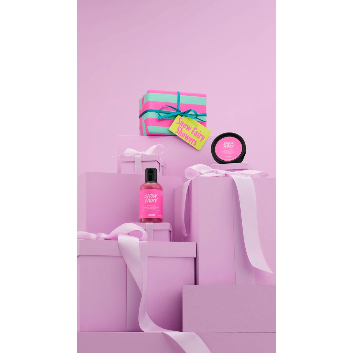 Snow showers? Boring! Dream of a bubblegum-pink Christmas with our iconic Snow Fairy shower and bodycare set to enchant you (and anyone within a 5-mile radius) with dazzling, candy floss magic.