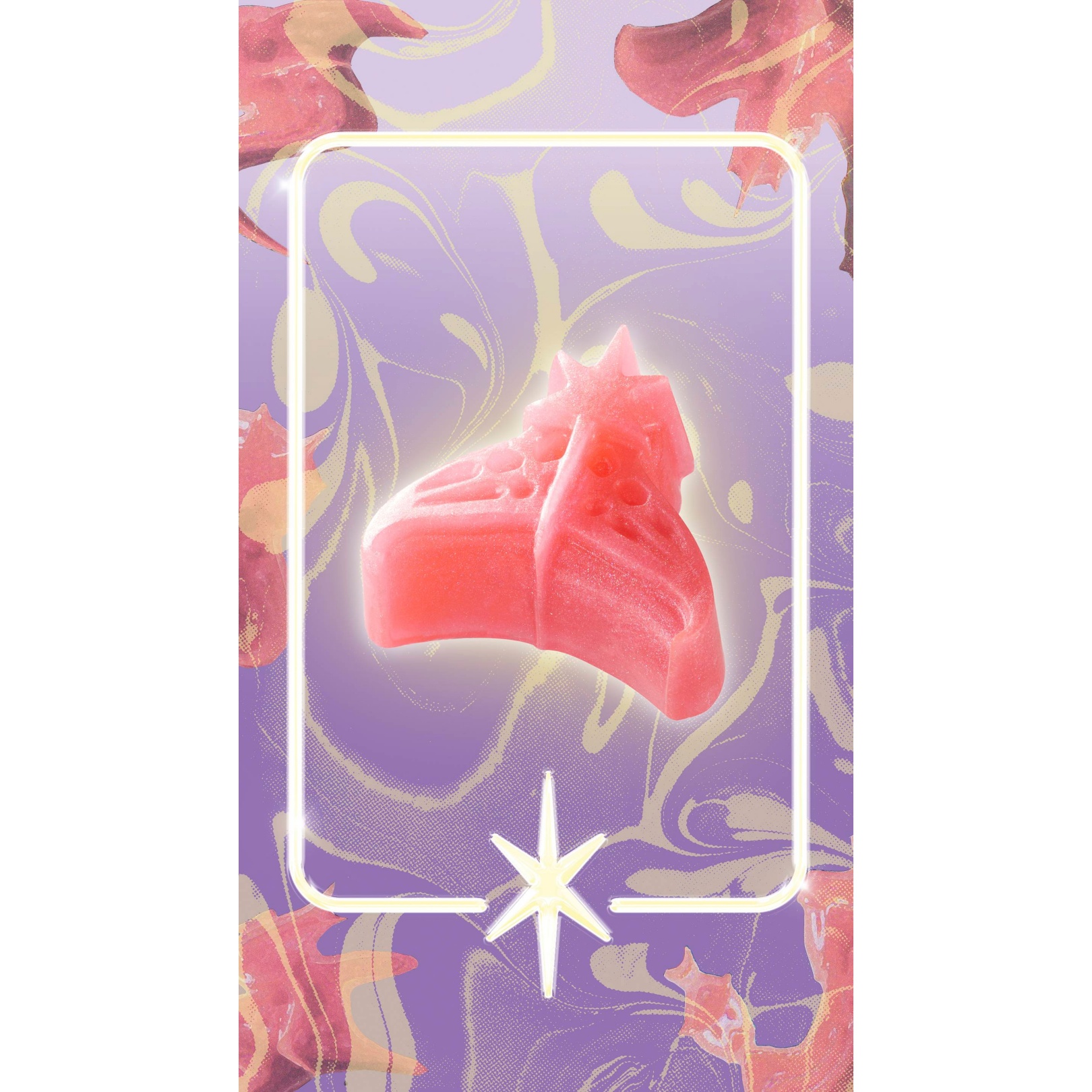 Gleaming with a gentle lustre, this KATSEYE x Lush soap radiates a warm, fruity scent with soft sweetness. The regal blend of almond and davana oils carries along a fragrant melody as creamy vanilla absolute radiates warmth and bergamot hits the top notes with a refreshing sparkle.