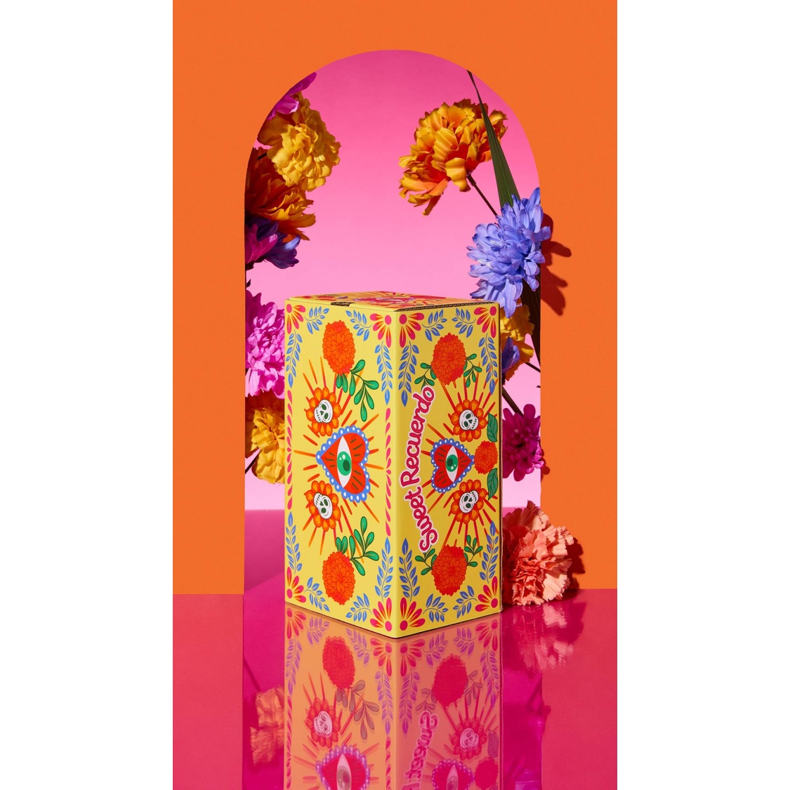 The beautiful design was created by California based graphic designer and illustrator, Blanca Molina. Born in Mexico, Blanca is inspired by her Mexican heritage and aims to inspire happiness, nostalgia and creativity with her work. She’s said about this gift, “Día de Muertos is a celebration where we honour and remember our loved ones in a positive way. With my design, I wanted to capture that same spirit – using vibrant colours and movement to reflect joy and life, while still honouring the traditional imagery of Día de Muertos.”