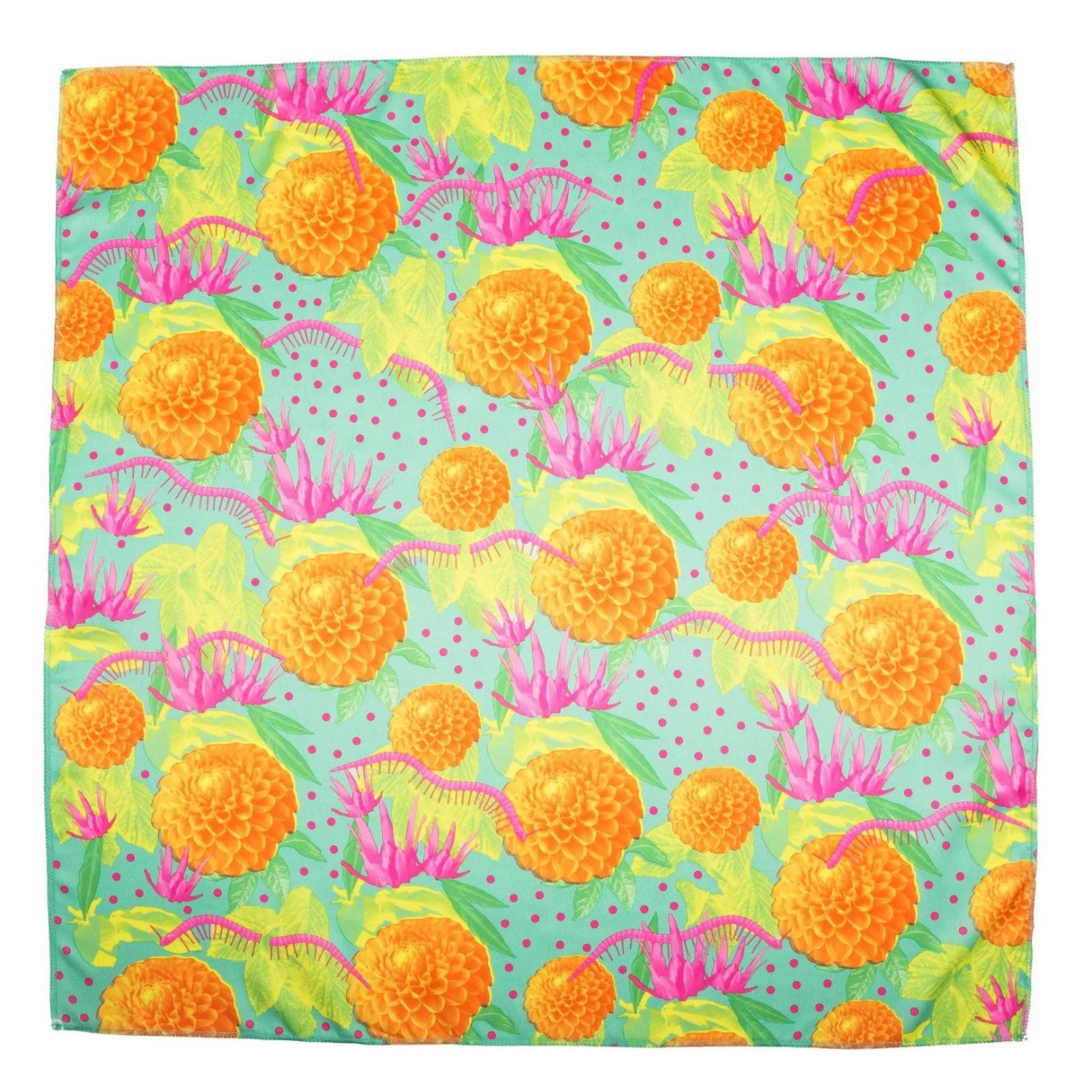 This Knot Wrap is 100% Recycled Polyester made from recycled plastic bottles. The bottles are collected to GRS (Global Recycled Standard) and are washed, spun and chipped. These chips are melted and go through a fine spinneret, which extrudes the plastic into yarn. The fabric is then printed using heat transfer method, which can achieve lots of detail and painterly effects, the process also uses less water than rotary printing. Once printed, it is sewn and finished in Anhui Province China. Pass Forward, Re-Use for a LUSH environment.